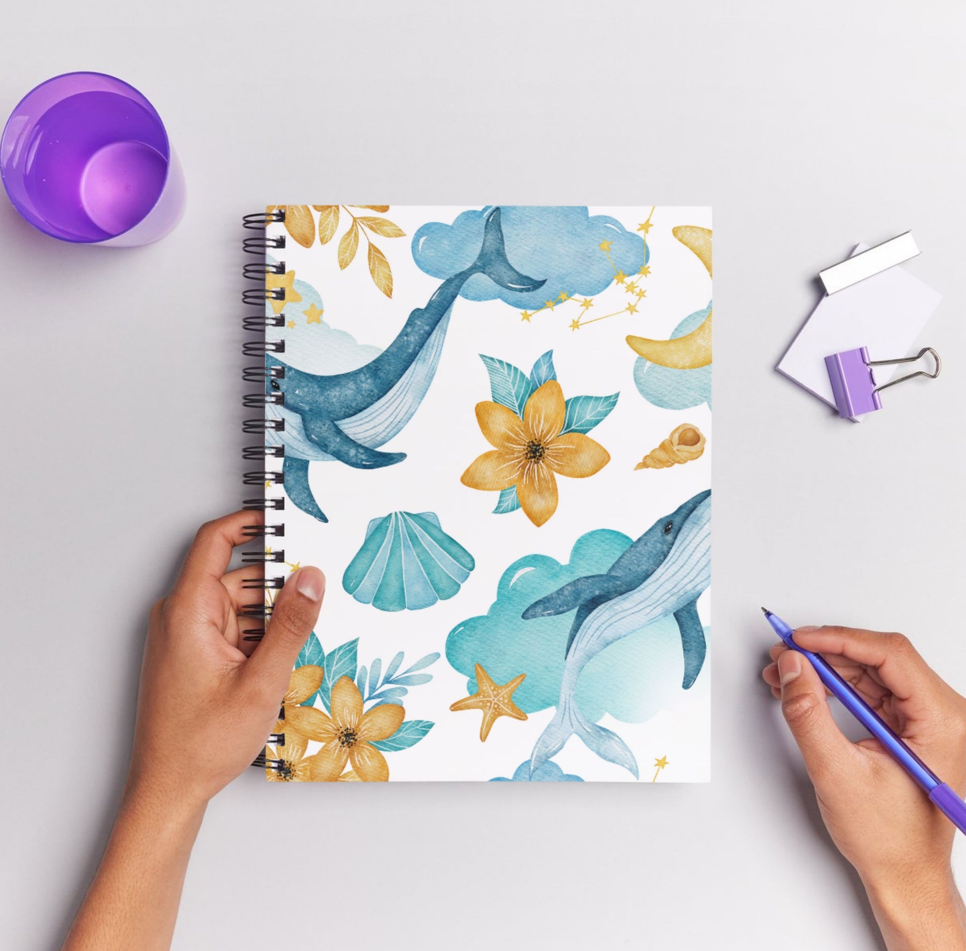 Bring elegance to your workspace with this beautifully handcrafted Aesthetic Watercolour Whales Print Journal. Each notebook features 50 pages of smooth 70 GSM paper