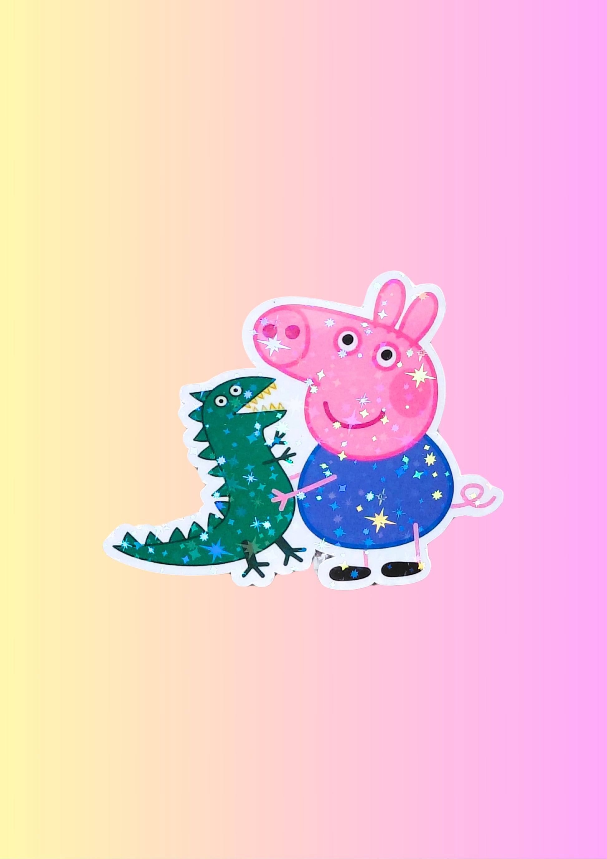 Pepa Pig- George Holographic 3inch Glossy Water Proof Vinyl Sticker Great for Water Bottles, Journals, Laptops, Phones